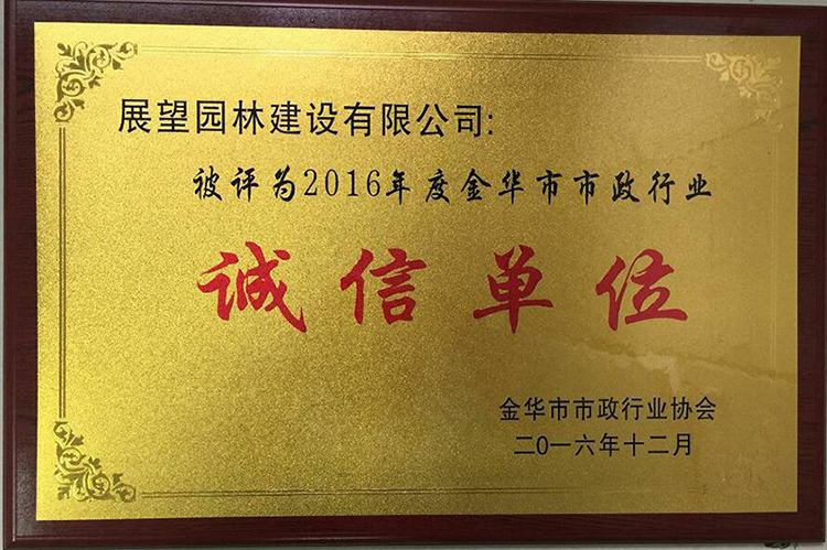 2016年被评为金华市市政行业诚信单位