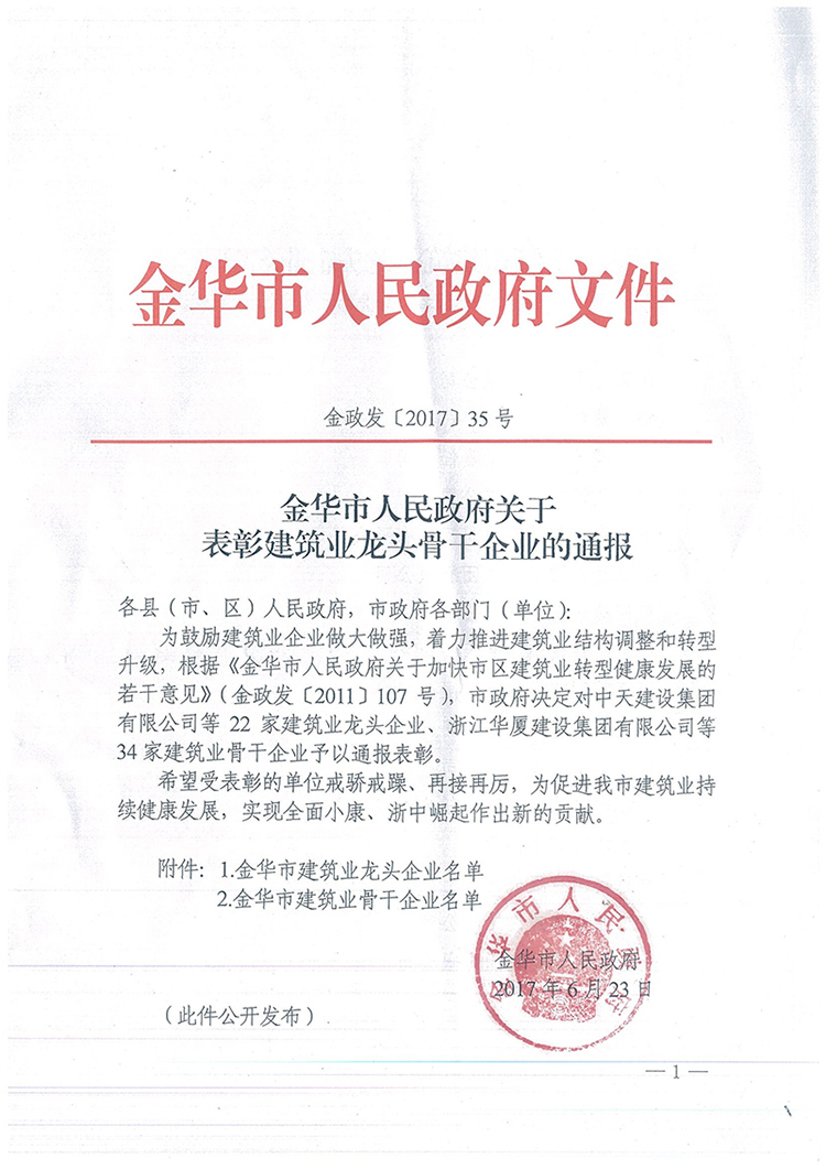 表彰建筑业龙头骨干企业的通报
