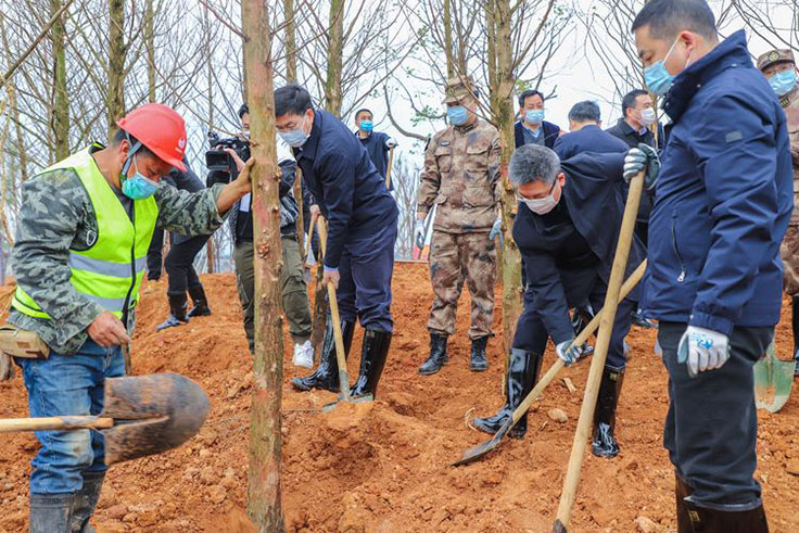 又是一年春光好,植树造林正当时。烂漫的三月春风宜人,苏醒的大地绿意萌动。3月12日上午,在市领导陈龙、尹学群、黄锦朝、陶诚华、陈玲玲带领下,市党政军领导和市绿化和自然保护地委员会成员单位主要负责人60余人来到由展望园林建设有限公司施工的沿江景观绿化带工程II标段项目现场,参加义务植树活动,以实际行动认真践行绿色发展理念,推进生态文明建设,为建设美丽家园贡献力量。